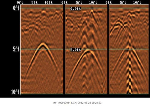 3 D Visualization provides the means to display volume, variable-opacity views, iso surfaces and oblique slices, rotation and different colormaps. These tools greatly aid in determining underground utility mazes without ever disturbing the soil, parking lot, etc.
