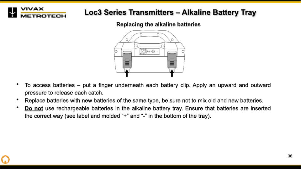 - Li-Ion Rechargeable Battery (typically 27-hours intermittent use) (both Alkaline & Li-Ion are standard)