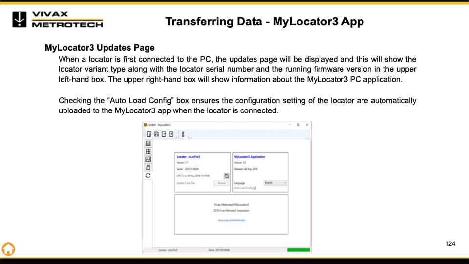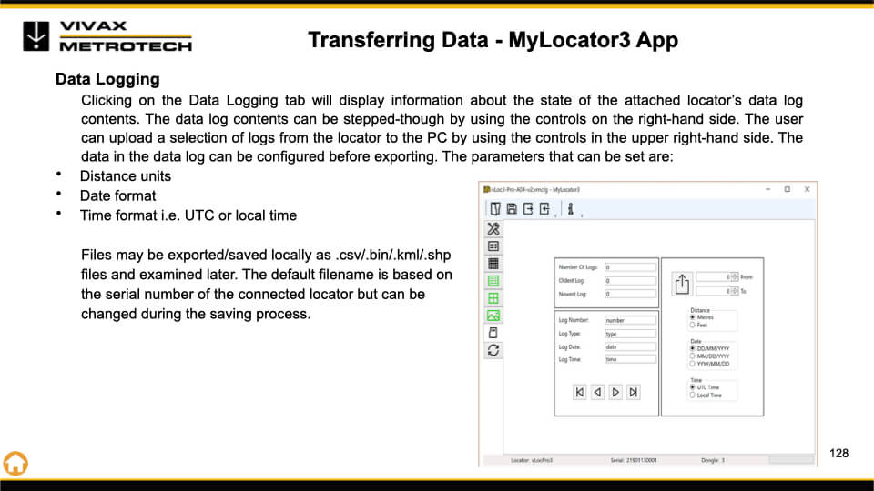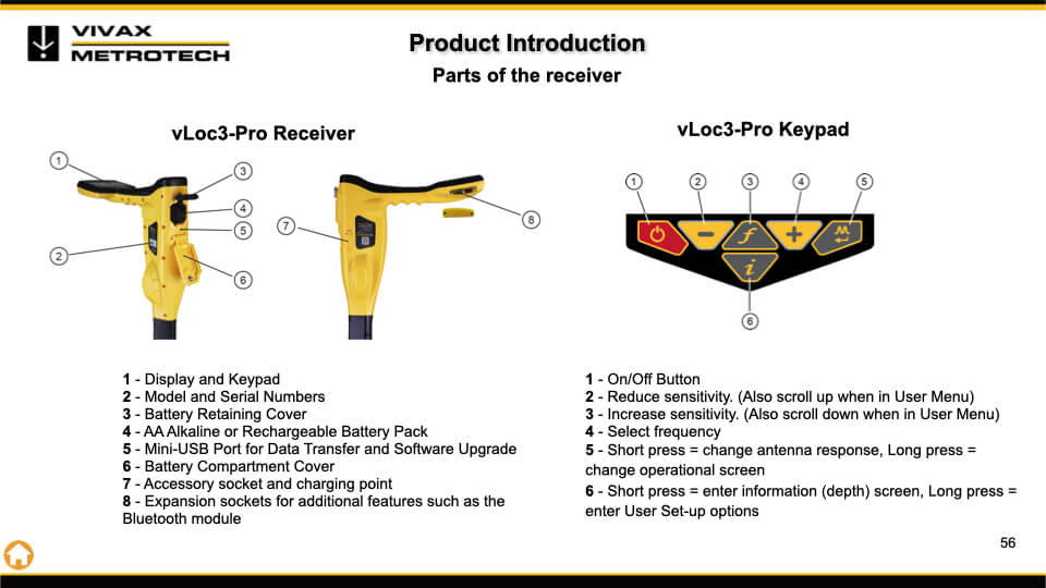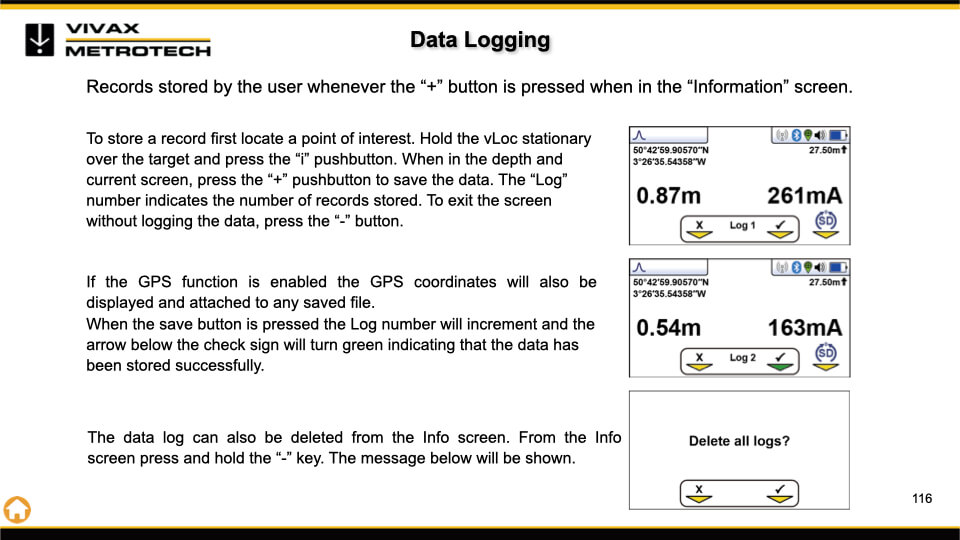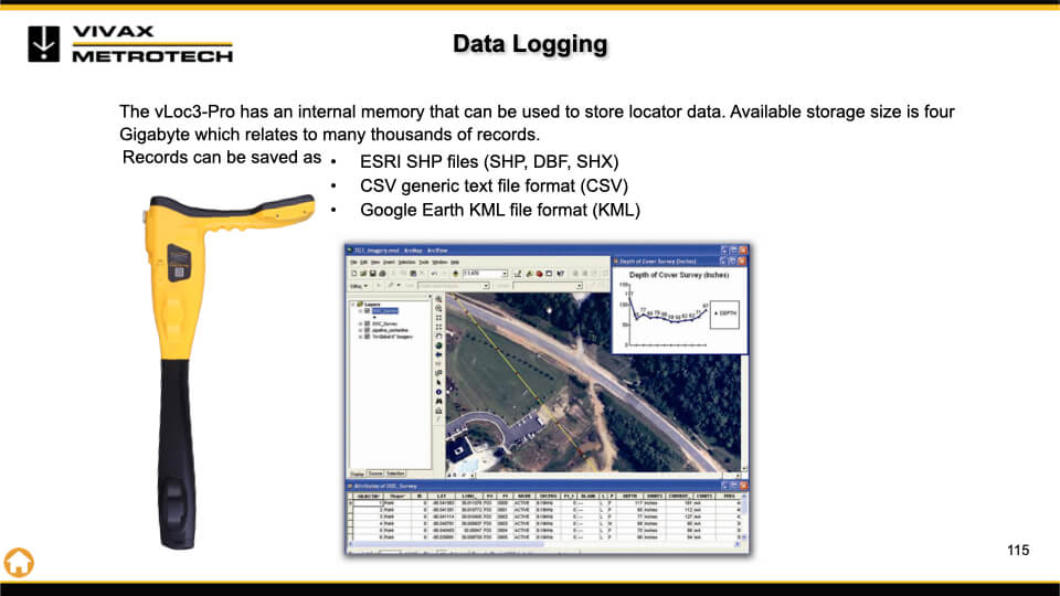 - Built-In locate data logging (stores 50 million records) - depth, current, frequency, mode, gain setting, signal strength, GPS coordinate, date, and time.